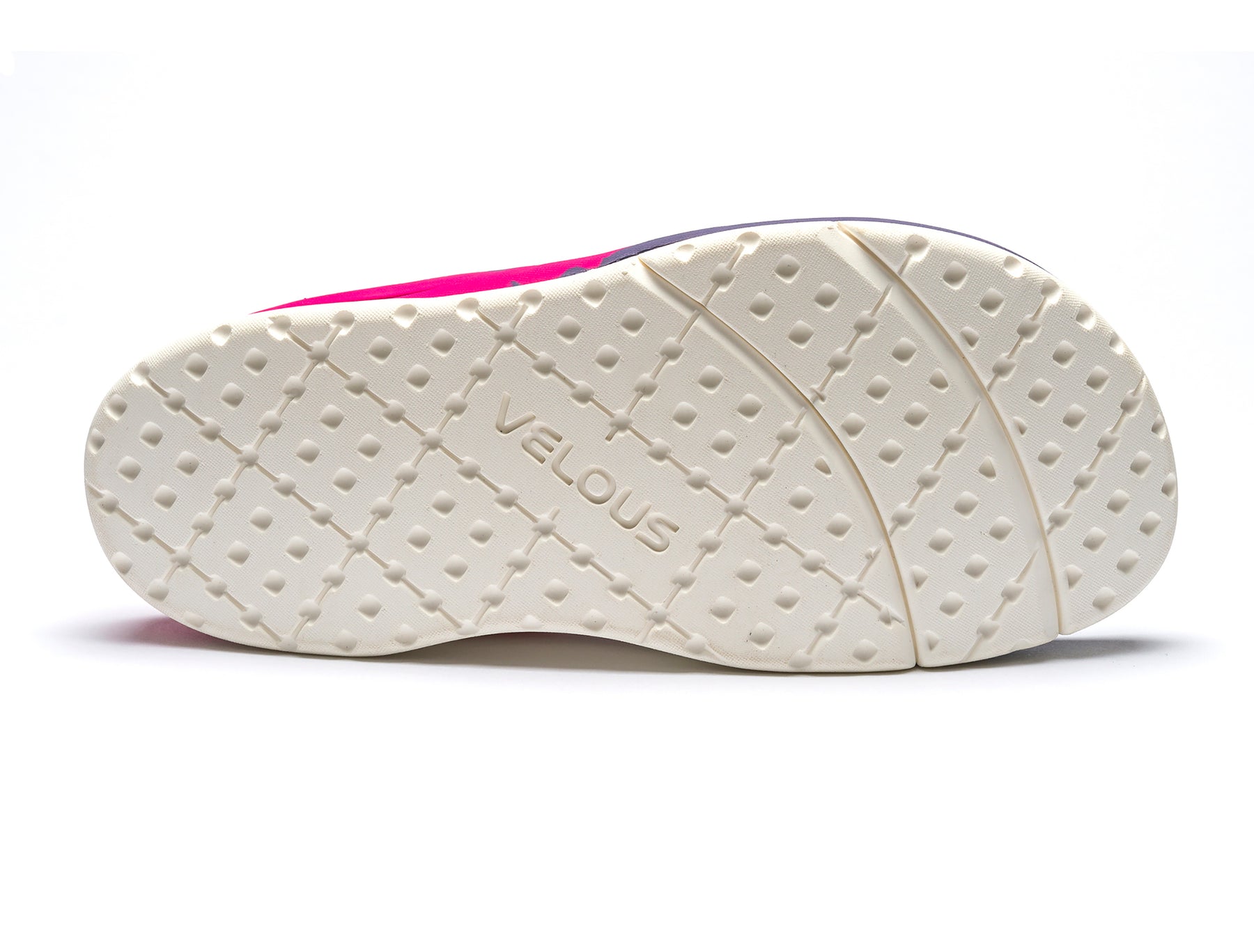 Om de beoogde ondersteuning, flexibiliteit en pasvorm van onze gepatenteerde technologie te behouden, moet u uw VELOUS-schoenen uit de buurt van extreme hitte houden; doe VELOUS-schoenen niet in de droger en laat ze niet langdurig aan de hete zon worden blootgesteld.